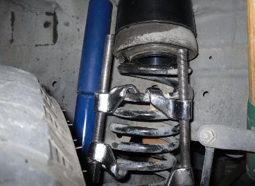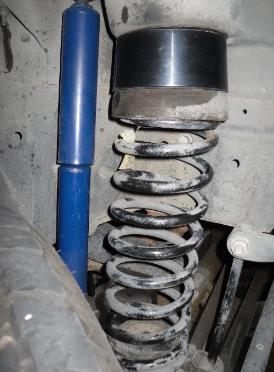 -Starting on the one side of the vehicle install the coil spring spacer onto the frame.