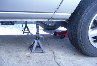 -Support the vehicle with jack stands on the frame behind the control arms so that the