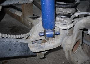 -Remove the lower shock nuts that secure the shock to the axle on both sides.